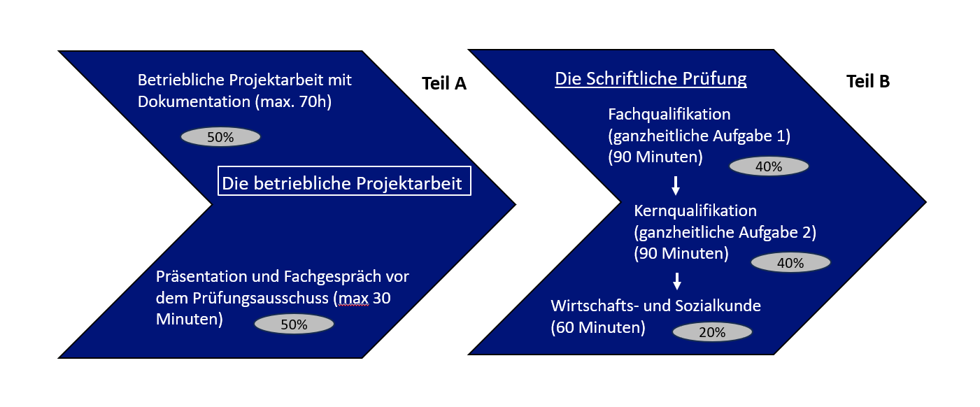 Teil A: der Prüfungsteil A der IHK- Abschlussprüfung ist eine betriebliche Projektarbeit. Diese Arbeit umfasst die vollständige Planung, Durführung und Reflexion eines realen Projektes.